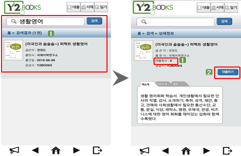 - 2. 전자책 검색 결과에서 책이미지 또는 제목을 터치합니다.